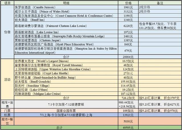 最后附上本次旅行的费用清单供大家参考。