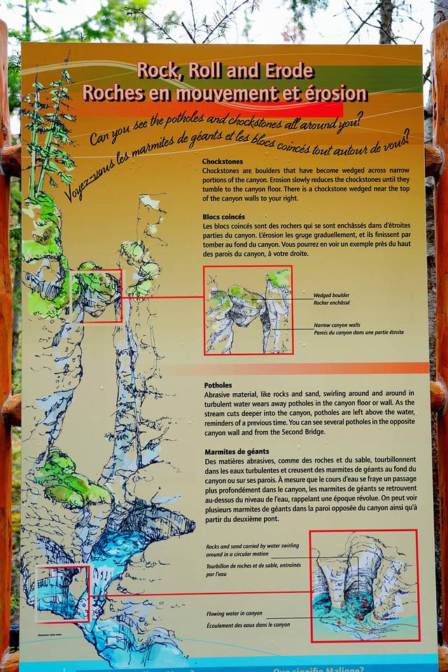 沿途的展板介绍了很多有趣的地质现象以及它们的成因,附近还有实物的对照,这些知识无论对大人还是孩子来说都很有科普教育意义,所以在峡谷里游览千万不要走马观花。