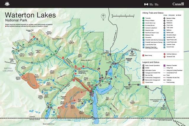 当然,世事不可能尽如人意,本次旅行也错过了一些心仪的徒步路线,比如沃特顿湖国家公园很著名的【熊背山步道(Bear’s Hump Trail)】,这条步道起点位于沃特顿游客中心,虽然路线很短,但坡度不小。经过一个小时的上坡,就可以俯瞰整个沃特顿峡谷和沃特顿湖的绝妙风景。很遗憾,因为沃特顿湖国家公园2017年遭受了严重的山火肆虐,熊背山步道毁损严重,时至今日仍未重新对外开放。