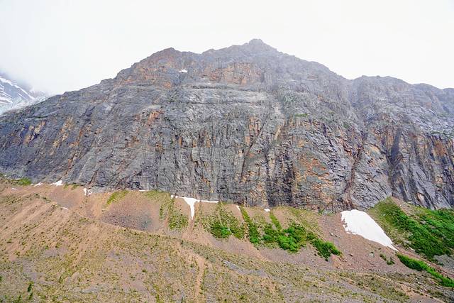 金字塔山海拔2766米,山上的岩石含有黄铁矿,呈现出被风化了的粉色和橘色,仿佛给金字塔山镀上了一层金。