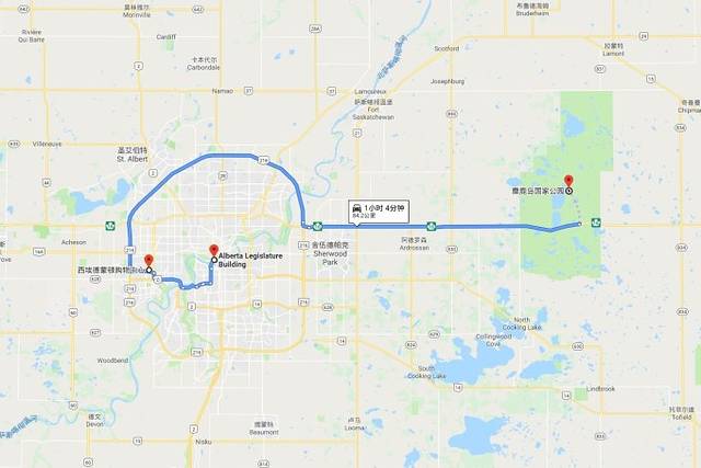 埃德蒙顿(Edmonton)位于艾伯塔省中部,是一座历史和现代完美融合的城市,也是艾伯塔省的省会。1795年建立之初是哈德逊湾 (Hudson's Bay)的一处毛皮贸易站,吸引着欧洲各地的探险家和移民,如今它是加拿大第五大城市。在这儿户外运动爱好者可以在埃德蒙顿河谷(Edmonton River Valley)漫步、远足、骑车,不出城市便可感受优美的户外环境;历史迷们可以流连于城内的各大博物馆和历史遗址;时尚达人可以在西埃德蒙顿购物中心(West Edmonton Mall)逛一天,这是北美最大的购物休闲综合区,面积相当于一座小城市;如果时间充裕的话,还可以驾车前往号称“埃德蒙顿后院”的麋鹿岛国家公园(Elk Island National Park),这里不光是人们休闲度假的好地方,更是北美最大的陆地动物——美洲野牛的天堂。