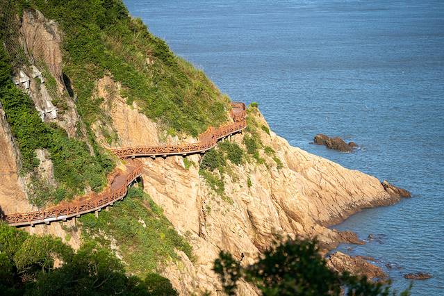 海滩上,无论你是跃入海中畅游,还是水上自行车、浆板,就算是带着孩子挖沙,都是其乐融融的景象。而沿着海岸线的栈道一路前行,走到海的另一边,极其开阔的视野,会有一种让你释放掉所有压力的畅快感!