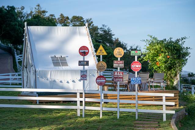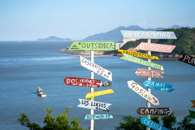 牛郎岗还有很多的游乐项目,全长520米的高空滑道,既充满爱的寓意,又惊险刺激,有一种坐在滑道上冲向大海的感觉。在高空滑道的下面,搭好的帐篷,有趣的路标牌,都是你凹造型拍海滩大片的最佳道具。