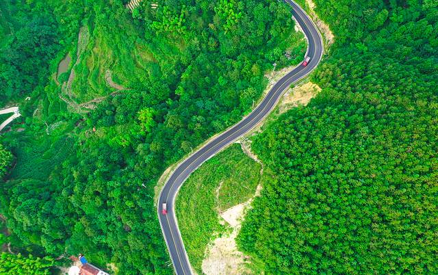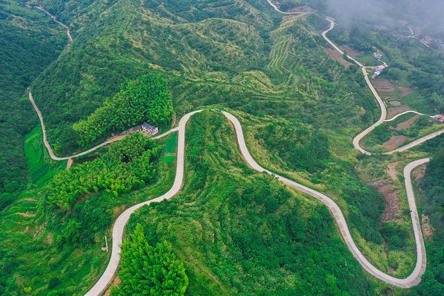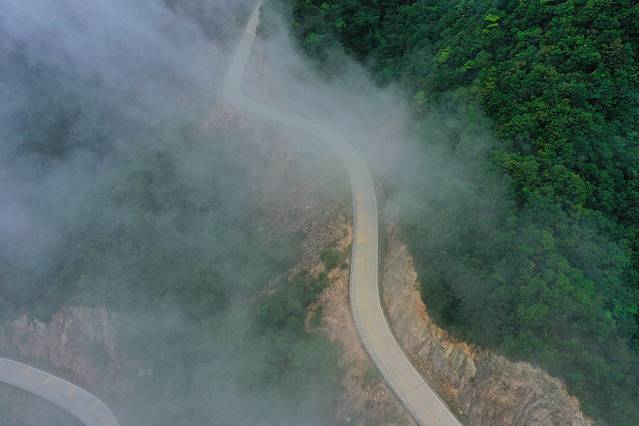 向远处望去众山重叠、由远及近共九重山,也因此得名“望九重”。 一路向下,山路盘旋,路况也是极好的,两边随处可见各种农家乐,经过一个又一个弯道,来到沿途的经典之处--8字弯,有一个太阳乡梦旅工厂的牌子,这里是很多机车爱好者的压弯圣地。自驾的这几天每天都有美丽的夕阳和晚霞相伴,自驾800公里大别山风景道,每一道都是风景,值得你来打卡。