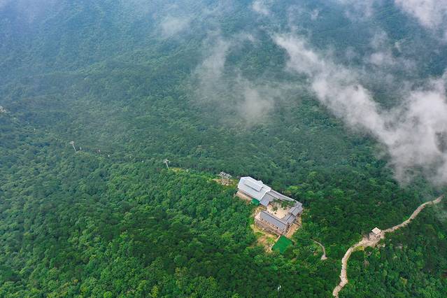 天堂寨所处的大别山,是 中国 南北水系的分水岭,山北水往 北流 注入淮河, 山南 水往南流注入长江。所以在天堂寨峰顶北可望中原,南可眺荆楚,巍巍群山尽收眼底。海拔1729米的天堂顶有一口天塘,塘水不溢不涸,俗称“瑶池”。