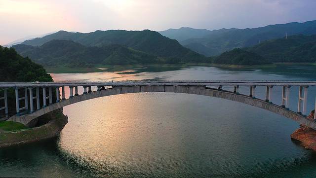 库区沿岸风景秀丽,名胜众多,天鹅岛、九王寨、梳妆台等景点,形象各异,栩栩如生,让游人流连忘返,叹为观止。这里是大别山风景道必打卡景点之一,是自驾旅游打卡的好去处。大桥横跨梅山水库,在傍晚的时候夕 阳西 下,太阳照在县梅山水库水面上,船缓缓驶过水面上微波荡漾。梅山水库坐落在史河上游梅山城区,由梅山水库兴建而形成的人工湖,从空中看湖水碧透,景色美如画。