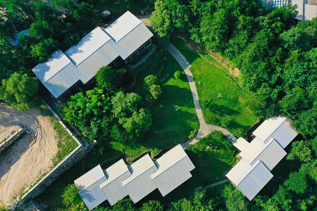 大别山庄度假村坐落在大别山主峰白马尖海拔950米处,自驾大别山风景道当天来到这里住宿,来到这里仿佛是来到了世外 桃源 一样,这里远离城市的喧闹,这里的建筑依山而建,因此在这里看到的是建筑物和天然物的融为一体,树从屋顶穿越,石从墙中生长,水从房中潺流。
