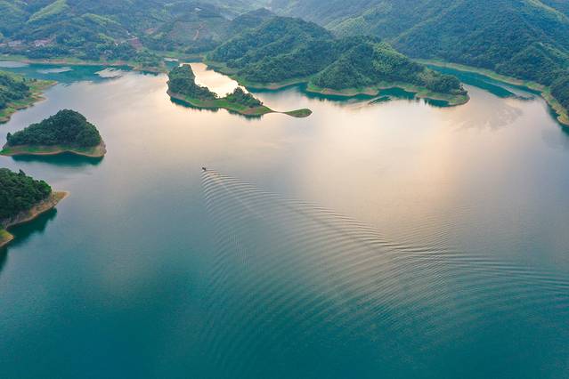 来到佛子岭水库最不能错过的莫过于坐船浏览水库两岸的景色,坐上快艇登上甲板,吹着风,看两岸景色美如画,仿佛就像是在画中一样。
