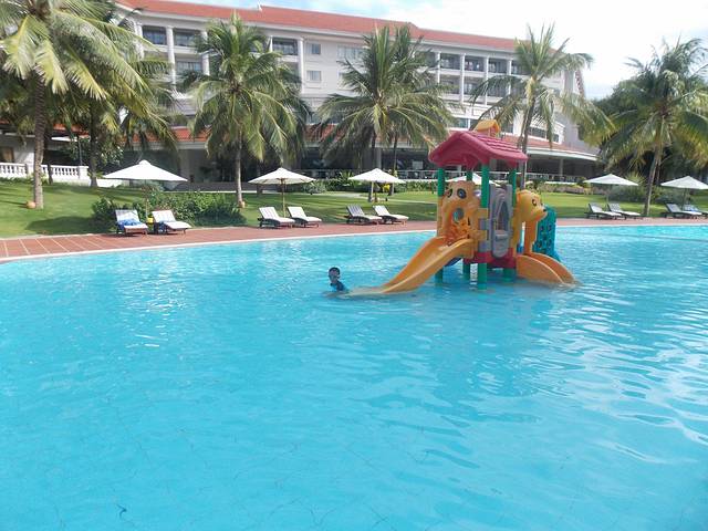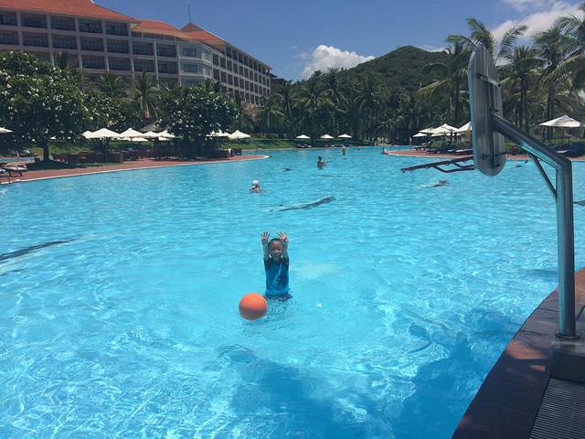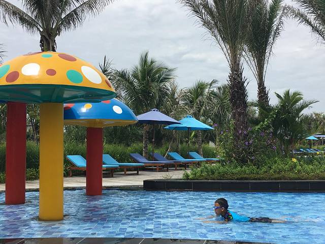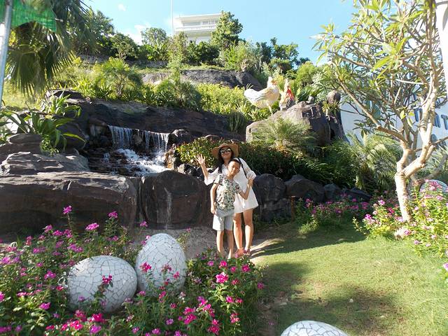 酒店离市区较远,但每天都有免费的车往返于酒店和市区之间,车直接到芽庄市中心的一个广场,回来的时候一样到这个广场,找的酒店的车,出示房卡司机核对名单就OK了。在酒店前台提前沟通,会记录并且进行核对、提醒。办理好入住会有一个信封里面有酒店相关服务内容和时间表,如果是收费的也标明了费用,有中文说明,非常方便。