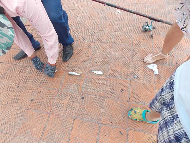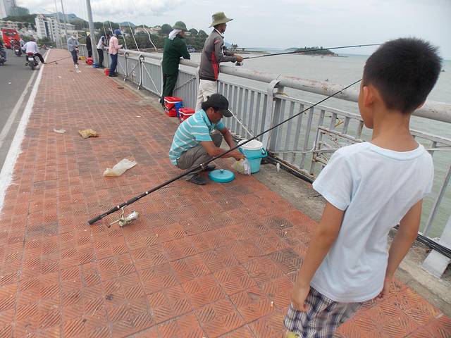桥上遇到一些正在海钓的当地人。