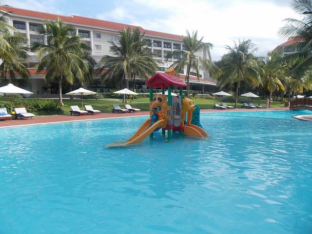 芽庄珍珠度假村拥有700米长迷人的私人海滩和占地5700平米的东南亚的大型室外游泳池,点缀以椰子树,草地以及漂亮的植物和树木使海滨更加迷人。