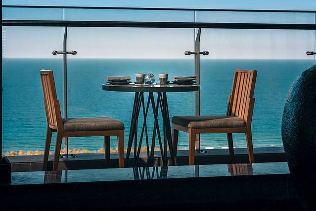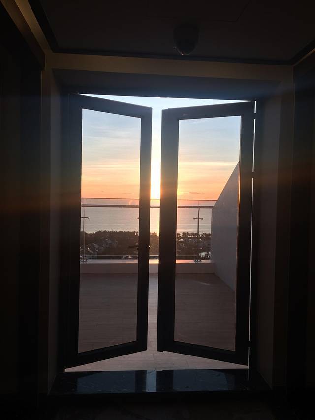 我们住在主楼里,所有房间都有独立阳台,每层楼有公共360度海景阳台,我们的日出就是直接在这里拍的,所有房间全部都是海景房,只是角度不同。