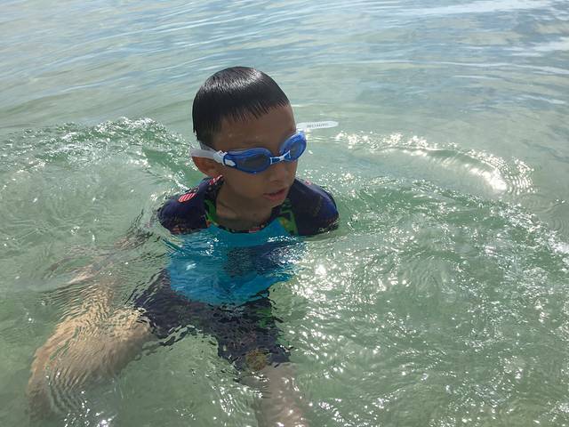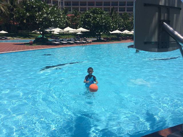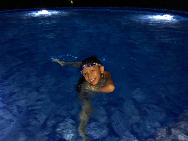 儿子仍然在泳池里玩的不亦乐乎,哪怕那么大的太阳也无所畏惧。