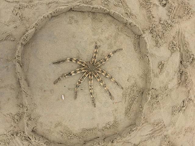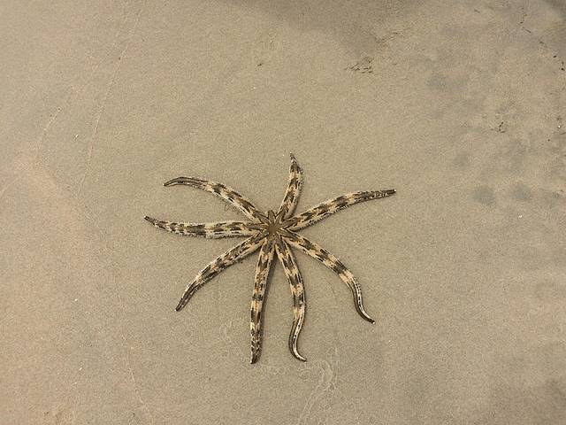 在沙滩上发现了一只搁浅的斑砂海星。