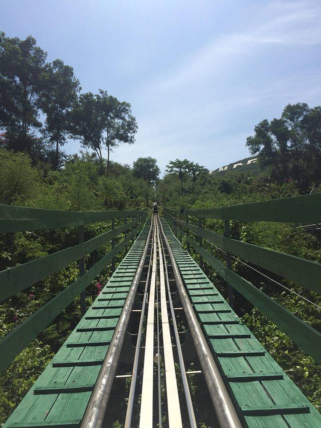 我们第一个项目去玩的是高山索道,滑道差不多到岛的最高点了,一路滑下来,尖叫声不断,超级刺激。只是人多要排队,我们排了半个小时左右,一直还想玩第二次,但是后面人太多了,而且这个项目下午就关闭了。(具体时间忘记了)