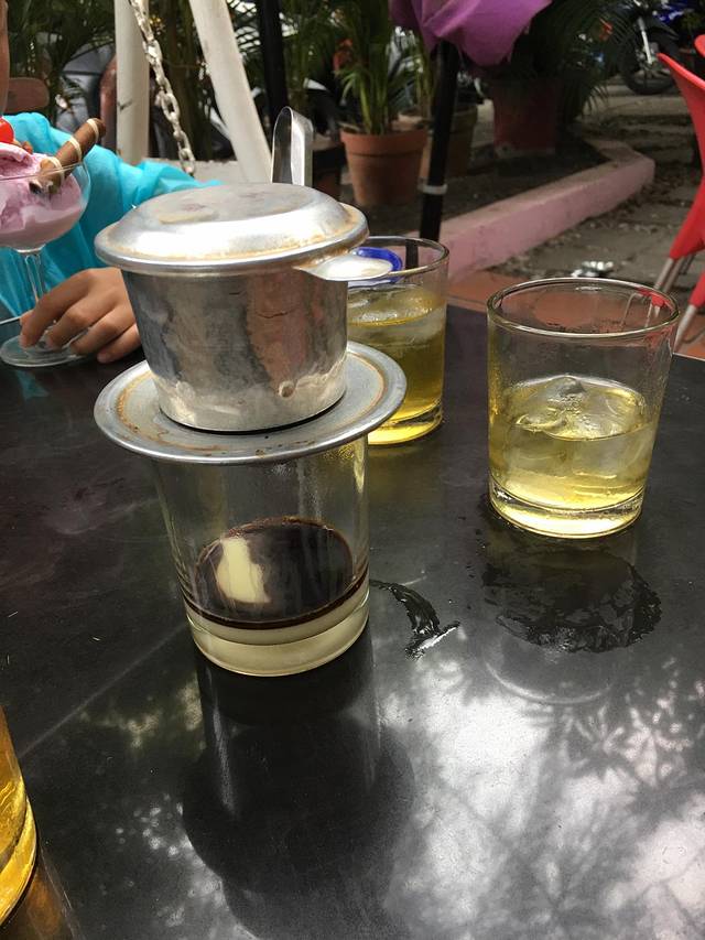 越南有名的滴漏咖啡——滴漏咖啡使用特殊的咖啡杯,紧密地压上厚厚一层咖啡粉,冲进热水,等咖啡一滴滴落进杯子里,然后再看个人口味加上适量的奶和糖。味道浓厚、醇香,喜欢喝咖啡的一定不能错过,一定不会让你失望。