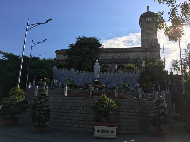 芽庄教堂是一座哥特式建筑,建于1928-1933年,很具有法国风情,教堂有钟塔和美如锦花、绘满《圣经》故事的天窗玻璃,石头建造的内部墙壁给人清凉之意。