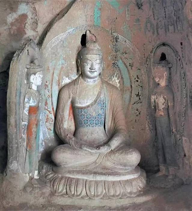 炳灵寺169窟一佛二菩萨(西秦,网上图片)