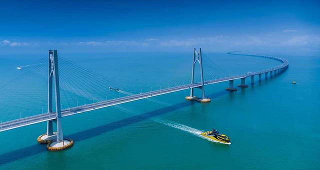 作为世界最长的跨海大桥,港珠澳大桥全长55公里,由桥岛隧和粤港澳连接线组成,创下多个“世界之最”,是全球第一例集桥、岛、隧道为一体的跨海大桥,是“全球最具挑战的跨海项目” ,大桥夜景灯光采用日常和假期双模式,日常模式返璞归真,以白色为主色调呈现大桥本色,节假日则通过变色LED灯实现五彩缤纷的变色效果。港珠澳大桥共有三座通航孔桥、七座桥塔:九洲航道桥的“风帆”双塔、青州航道桥“中国结”桥塔、江海直达船航道桥的“海豚”塔。