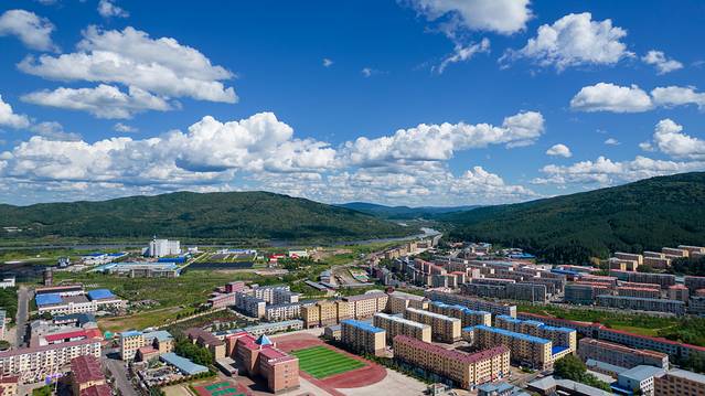 伊春是小兴安岭的心脏,地处黑龙江东北部,是个避暑胜地。我们来到伊春市区,自然得吃一顿伊春味道。无人机飞上空中看一眼这座城市,一望无际的森林与河流。