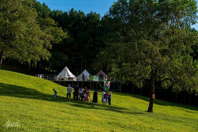 其实是这几年疫情影响下,大部分人家都只能在家附近走走停停,于是搬家式露营火了一把。天幕、桌椅,户外野食,这次的哈尔滨啤酒节也紧跟时代潮流。主题基本都是以天幕、露营、房车等等来布展,走在整个主会场,就像是走在一个花园里,还是很不错的。