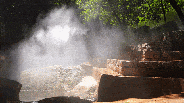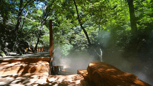 景区利用雾森效应制造出一种云雾缭绕的视觉感受,雾森兼具除尘、降温、保湿的功效,富含大量的负氧离子,被称之为"空气中的维生素",每毫升的空气可产生10万—50万个负氧离子。