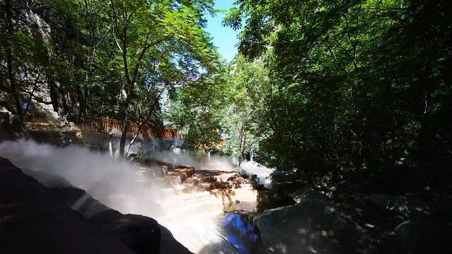 步入景区,四壁葱茏,雾似薄纱,仙气袅袅,如仙境一般。在其中嬉戏玩乐,犹如漫步在瑶池仙境,琼楼玉宇,若隐若现、朦朦胧胧的烟雾犹如在空中舞动的白色精灵,给景区平添了一份神秘,优雅。