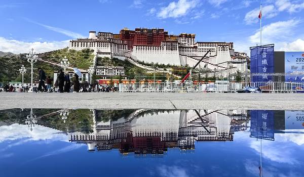十方普贤圣像是一座通高48米,总重量达660吨的铜铸镏金工艺佛像造像,由台座和十方普贤像组成。