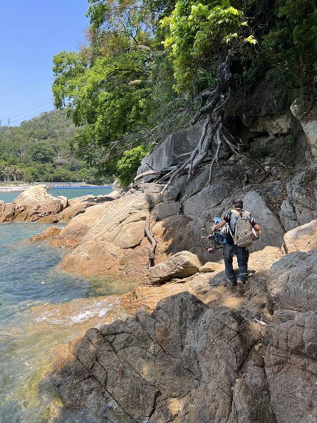 这时太阳晒过来了,野哥给我们搭棚挡阳光。