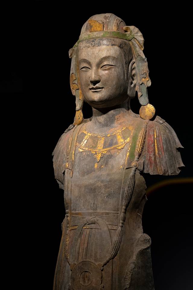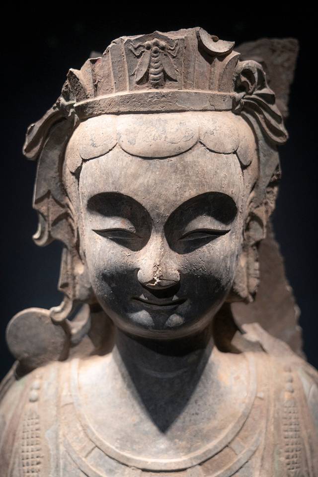 这尊北齐蝉冠菩萨不仅容貌美得惊为天人,更是因头冠上的“蝉”元素而极其珍贵。