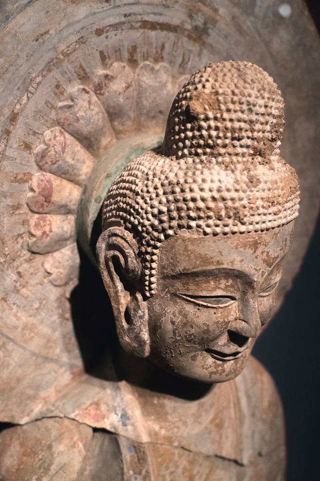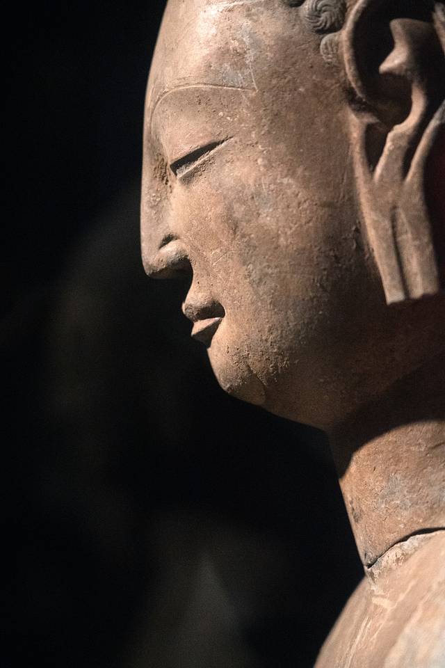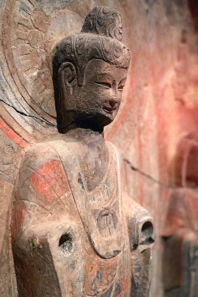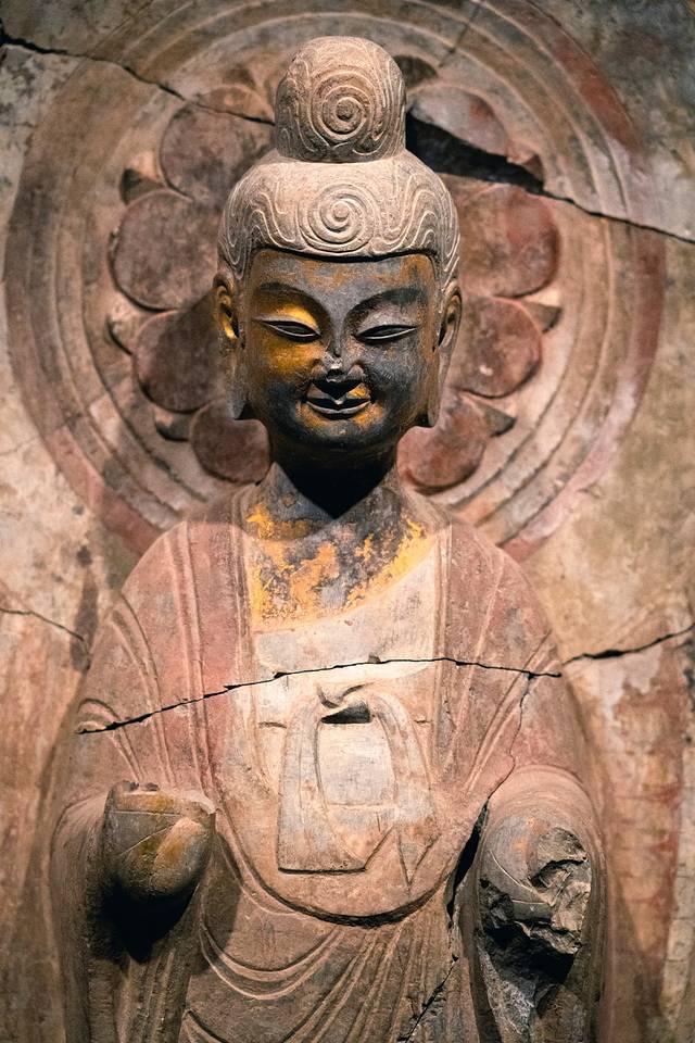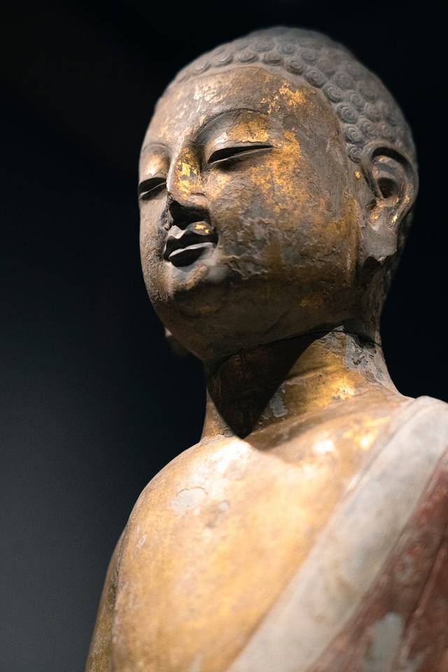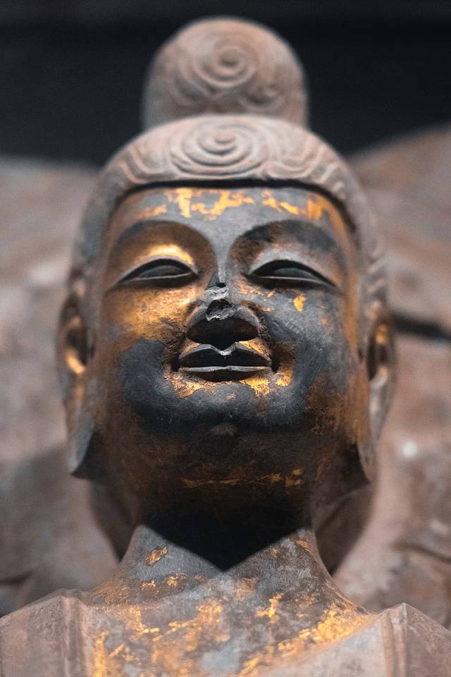 只是,文化政治是堵碎砂砌成的高墙,稍有风吹草动便轰然倒塌。北周武帝灭掉北齐后,开始在北齐境内大力推行灭佛运动。“融刮圣容,焚烧经典”,火光过处,寺塔焚毁,佛像破碎,经书禁锢,僧众散尽。历史上四次灭佛运动中的后三次,尤其是唐武宗那一次,对青州的佛教艺术造成了毁灭性的打击。曾任山东省文物局副局长的张从军教授说,“青州龙兴寺出土的众多残缺造像,为这次灭佛对青州佛教的毁坏做了最好的注脚。”那些属于一个时代的、平静又触目惊心的微笑,从此沉埋地下,直到几百年后的一个午后,被另一位僧人重新捡拾,在龙兴寺地下埋成宝藏的样子,等待着与千年后的人们再次遇见。