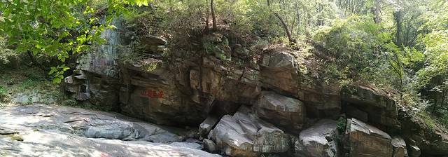 返程的路上,有个小景点,山谷流泉摩崖石刻,但最近天气干旱,安徽已经40天高温,没下雨了,所以只有山谷,没有流泉了,石刻安好,都是名人诗词,可以好好欣赏一下。
