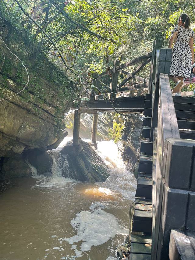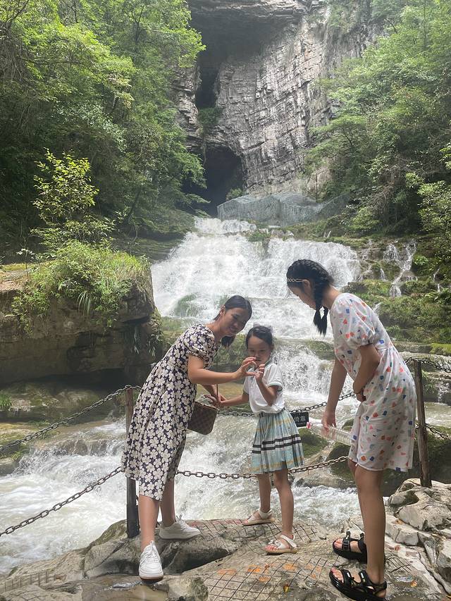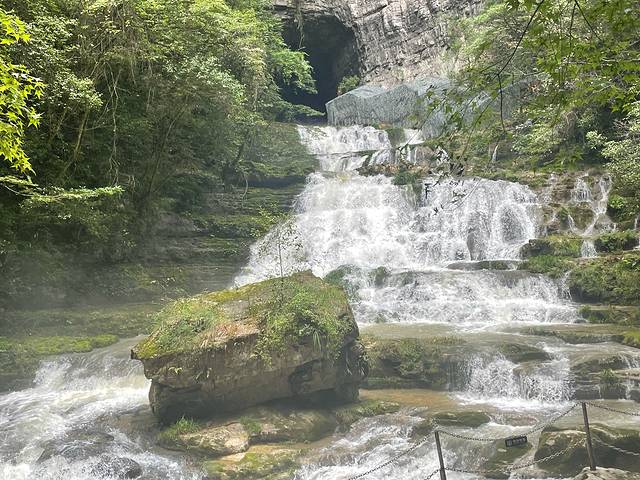黄龙洞出口的瀑布,因为有六道坎,被称为“六叠泉”