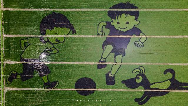 一幅“稻田画”的种植大致要经过彩稻选育、图案设计、画面定位、人工栽种、田间管理等环节,随着水稻的持续生长,目前图案已十分清晰,你只需站在观赏台上即可观其全貌,不同角度、不同高度看到的景致都不尽相同。