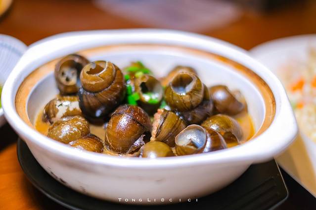 田螺塞肉煲:大田螺里是把田螺肉挖出来和肉一起剁碎,然后在塞回去的,方便了吃法,又保留了田螺肉质的鲜。