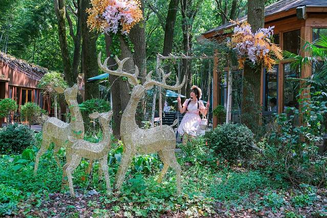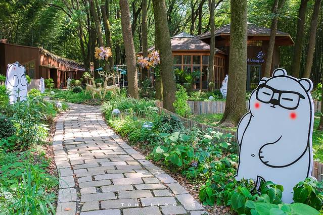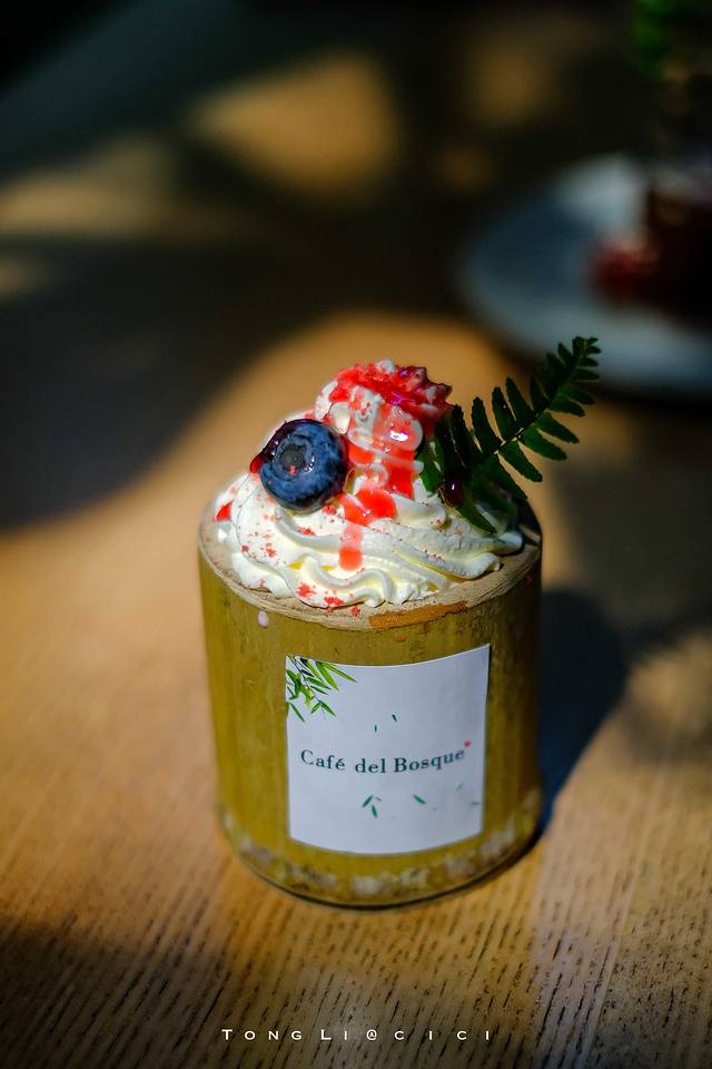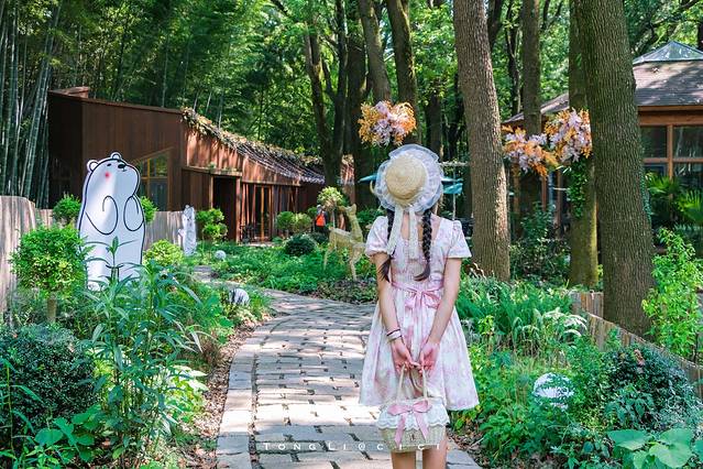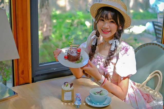 森林小路上的木栈道,一幢幢的小木屋,落地的木门和透着阳光点点的玻璃窗户,长木桌和可爱又精致的甜品,像极了童话故事里才有的画面。