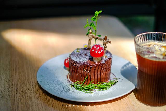 ·蘑菇树桩的蛋糕:巧克力的脆皮,是树桩的造型,配上可爱的小蘑菇,可爱又可口;