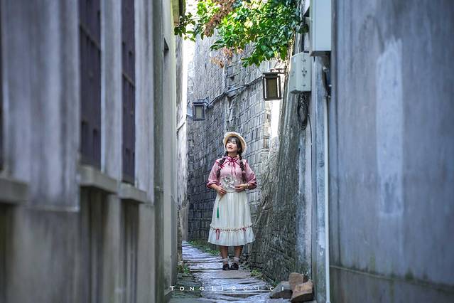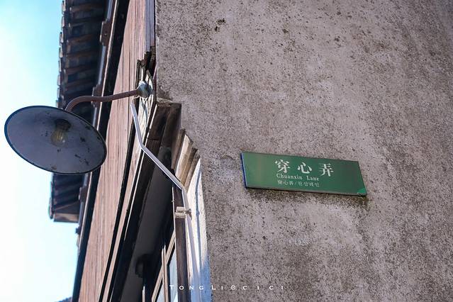 穿心弄便如同这条戴望舒诗歌里的雨巷,小巷偏安于古镇一隅,细长、静谧而安祥。巷两侧的墙院极高极近,便显得小巷愈深,穿过细长曲折的小巷,斑斑驳驳的苔痕,盘绕斜挂的藤萝,似乎在诉说着小巷人家的岁月与故事。