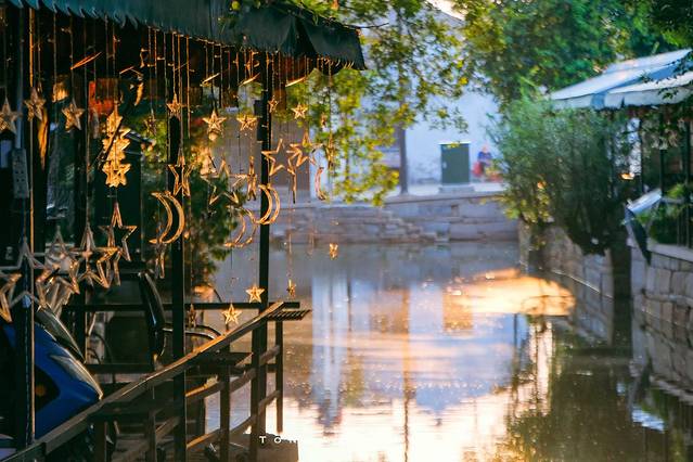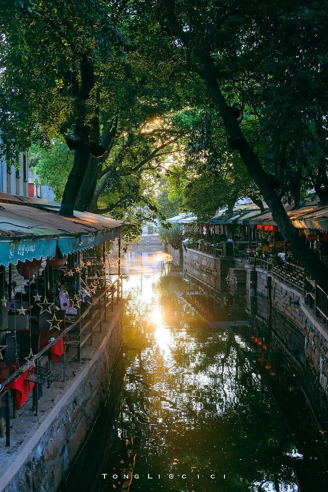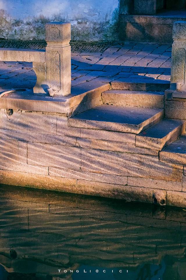 温柔的光线正好,橘色的落日在同里古镇的河道上洒落。