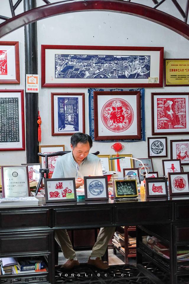 这座从时光深处走来的古镇沉静不语,满眼如诗。“江南剪纸第一人”计建明的“剪南春”剪纸工作室,就栖息在同里古镇深处,在一个个长情而朴素的日日夜夜,默默传承着剪纸这份非物质文化遗产。