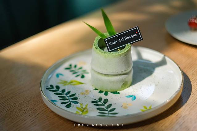 ·竹筒的蛋糕:竹子的造型,非常的清新,是浓郁的抹茶慕斯味儿。