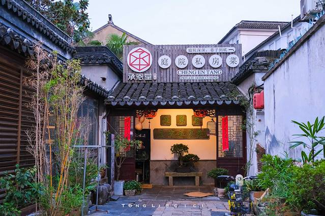 苏州同里古镇的承恩便是一家很有代表的私房菜馆,餐厅是一座拥有了300多年历史的古宅子,“藏”在同里古镇的一条不起眼的巷子深处,庭院深深,但酒香不怕巷子深。