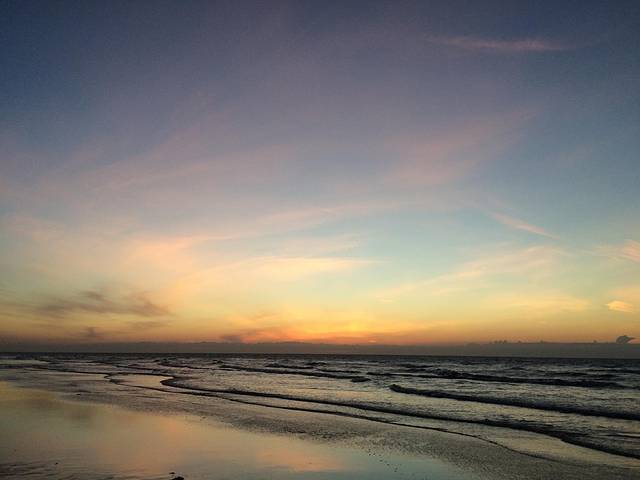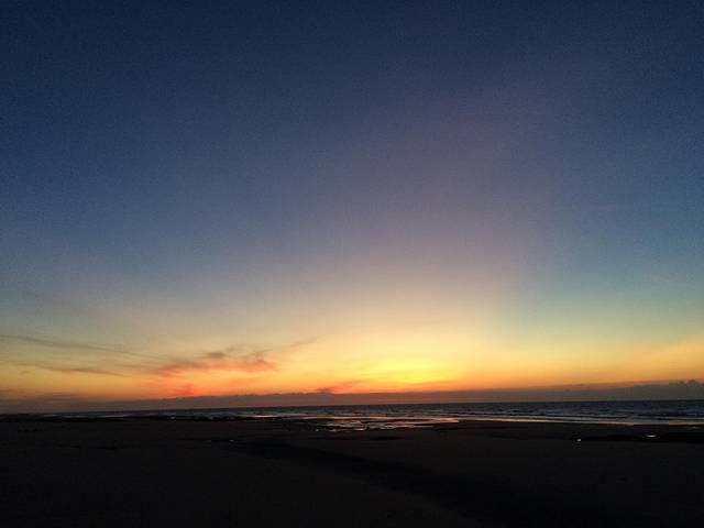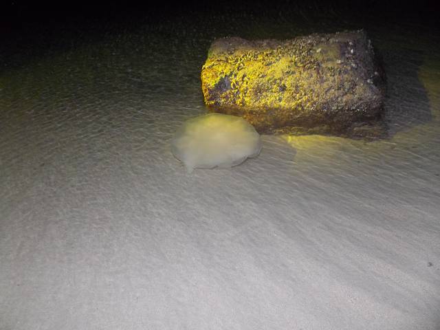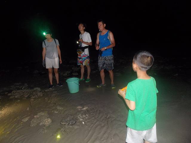 晚上除了我们手电筒和手机照到的地方有光,其他地方都是黑的,我们离海的距离最近也保持在50米左右,毕竟漆黑一片,安全第一。后面我们的手电筒没电了,时间也差不多我们便回去啦!