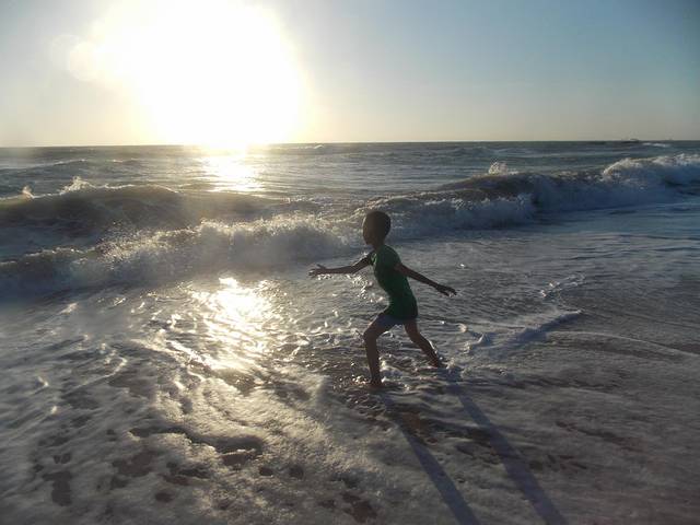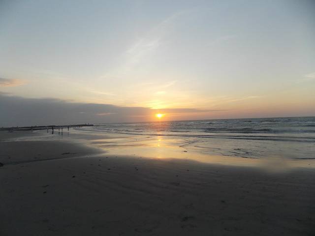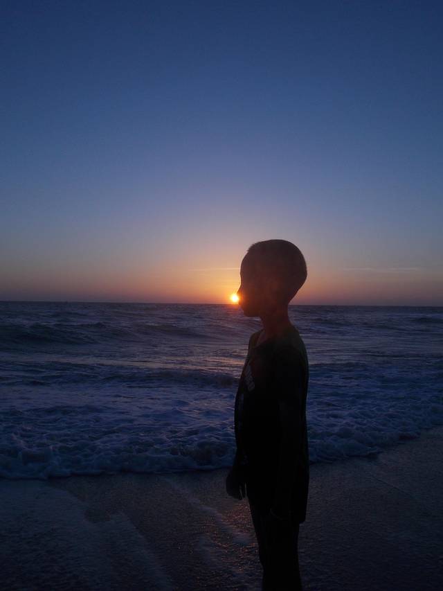 我们骑着电动车到的还早,就在海边玩了一会,实在太晒,我们就在旁边的大排档吃着海鲜烧烤(价位相对高一些)、喝着冷饮等待日落。