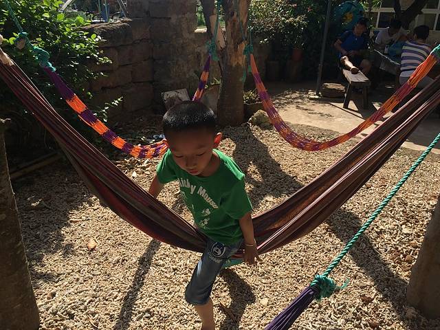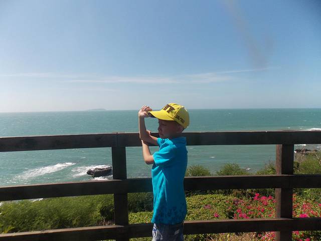 几经辗转终于上岛了,儿子因为晕船精神不好。