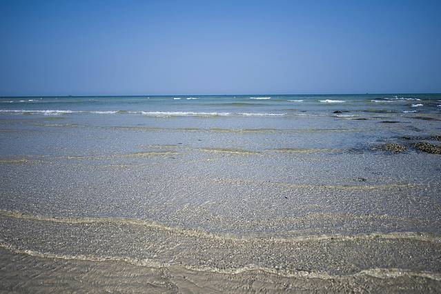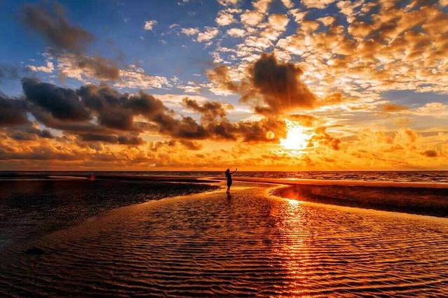 上涠洲岛玩,一定要起来赶海,老板都会告诉每天赶海的最佳时间。赶海可以在搁浅的海滩上抓螃蟹、捉鱼,更能够发现很多神奇的海洋生物:剑鱼、章鱼、水母、螃蟹……我们很幸运发现了章鱼,老公正去抓它,它喷墨,结果就不见踪影了……没有办法用照片记录,赶海真的是非常神奇、非常有趣的体验。