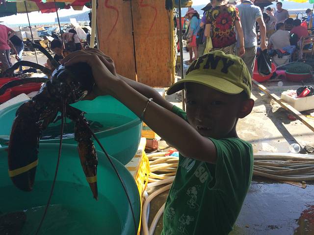 我们买了一只龙虾,才一百多(150不到)。晚上老板帮我们做了刺身和煮海鲜粥,但是找不到龙虾晚餐的照片,应该是不小心被删了。