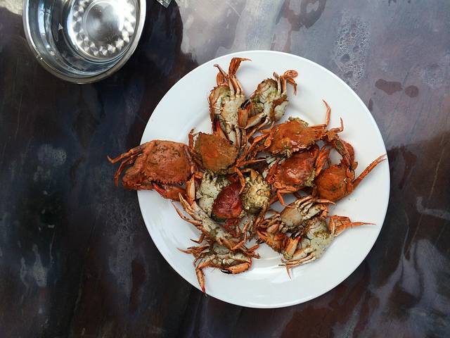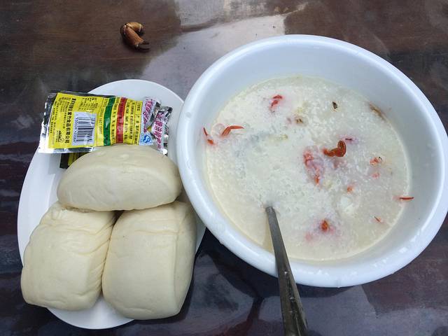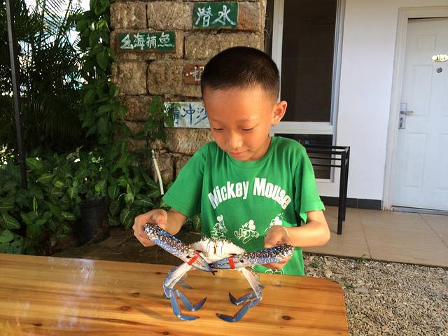 营养美味的早餐:油炸螃蟹、海鲜粥。螃蟹用油炸以后撒上椒盐,酥、鲜、香。特别感谢湖南的朋友和小嘉夫妇,其实我们昨晚就是去玩的,也没有抓到什么,谢谢和我们一起分享美味!