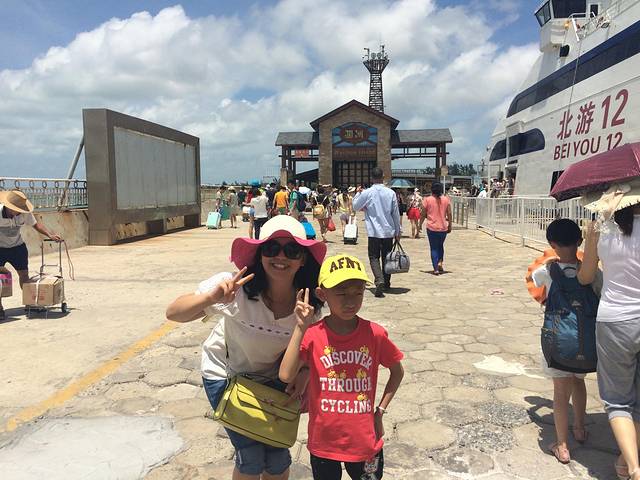 出了高铁站打车到码头,买了船票等着上船登岛。不知道是不是因为在火车上睡得不好,我和儿子都晕船了,儿子还吐了一次。所以提前一定要准备晕船药或者晕船贴。