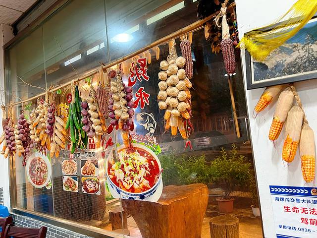到海螺沟,必须要经过摩西古镇。饥肠辘辘的时候遇到美食是一大幸福,古镇上的饭店可以吃到地道的川菜。唯一遗憾的是只顾着吃,没留下照片。只记得一桌人边吃边说好吃好吃……